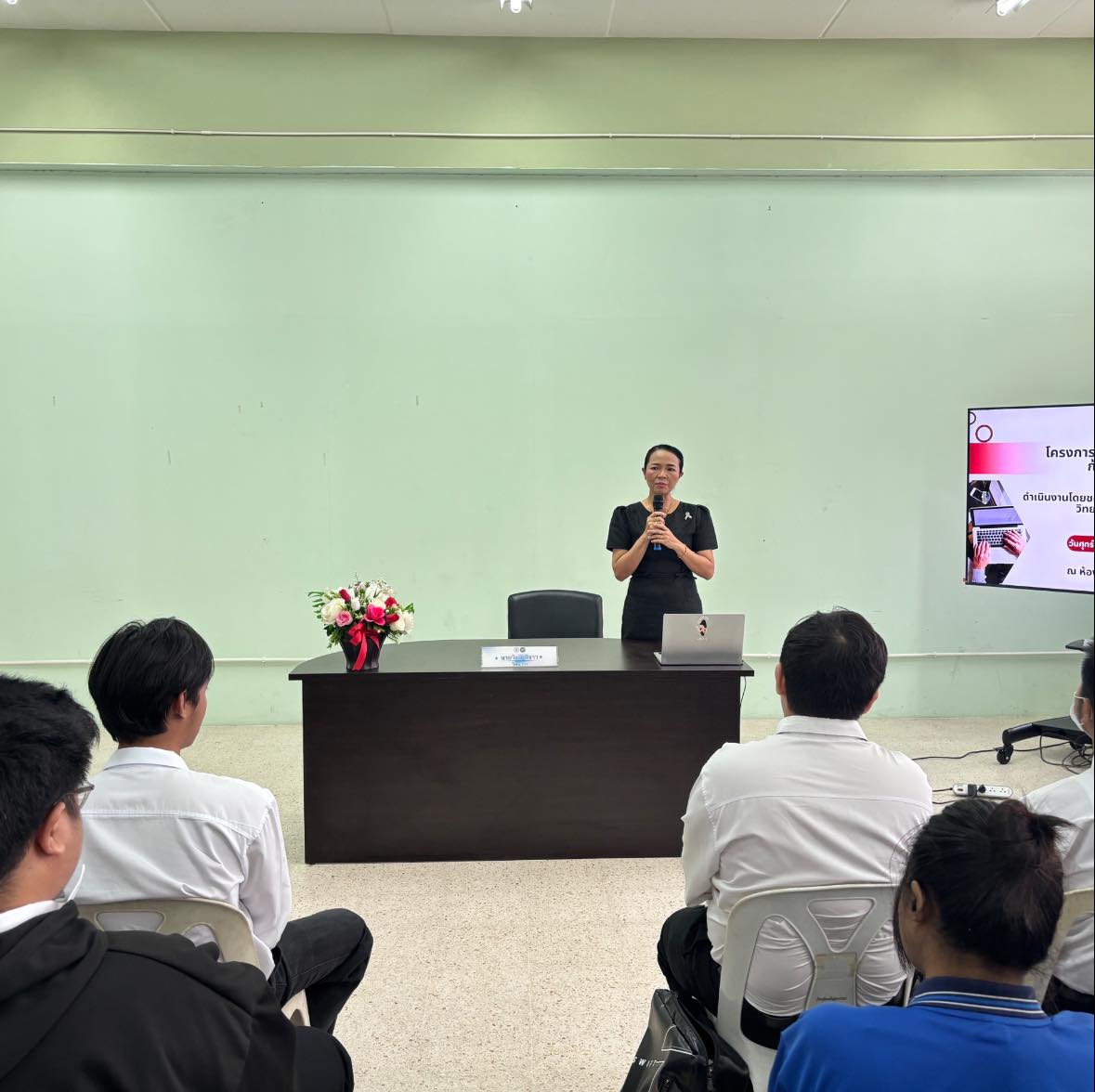 นางสาวอรทัย เลิศขุนทด รองผู้อำนวยการฝ่ายกิจการนักเรียนนักศึกษา เป็นประธานในพิธีเปิดโครงการ