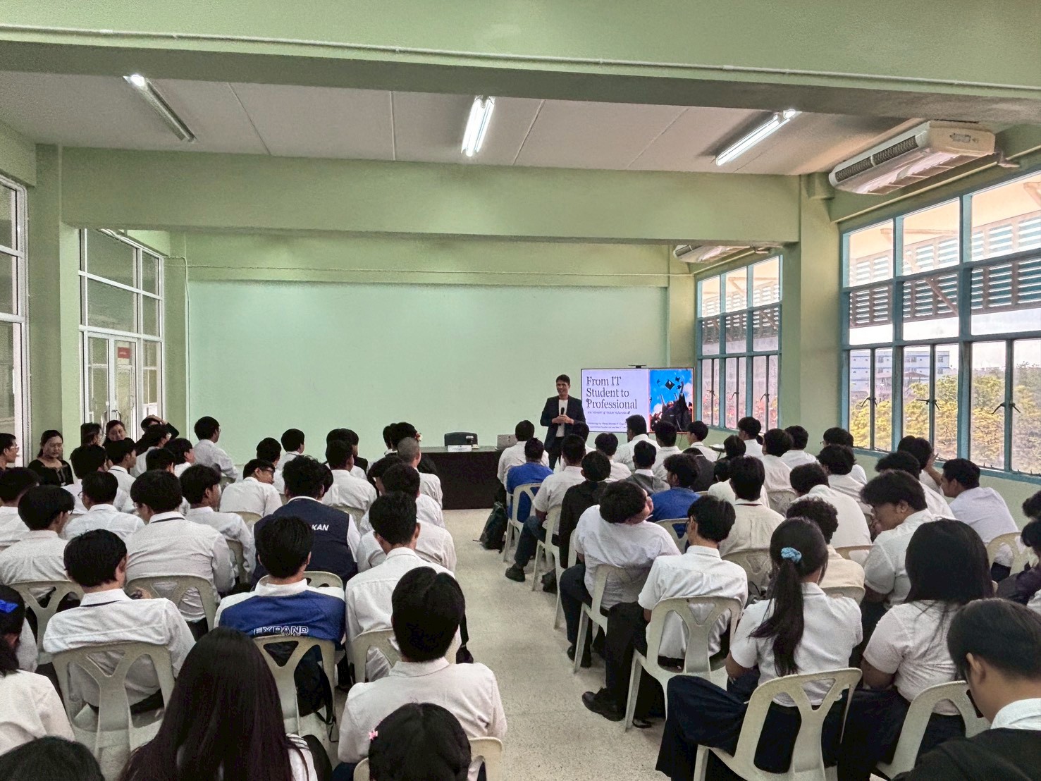 ชมรมวิชาชีพเทคโนโลยีสารสนเทศ วิทยาลัยเทคนิคสมุทรปราการ ได้จัดโครงการ”เสริมศักยภาพผู้นำรุ่นใหม่ ก้าวสู่โลกการทำงาน”